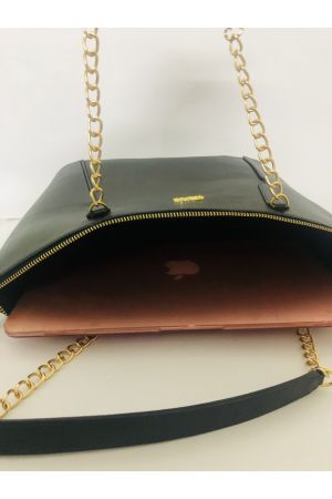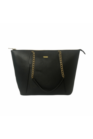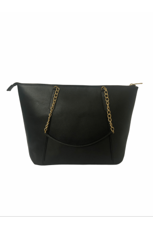 Black solid milled leather Vancii tote bag,main compartment,1external zip pocket,and 1 inner pocket